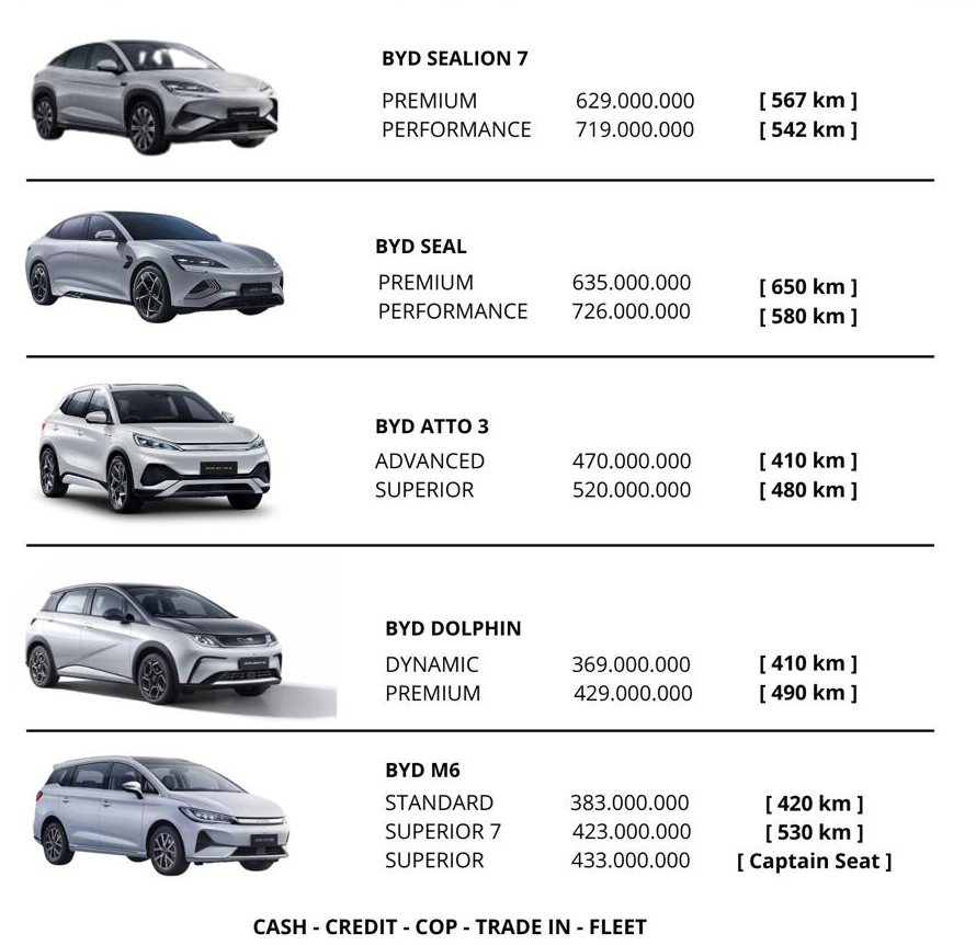 Dapatkan Penawaran Harga Terbaik dan Promo Menarik Untuk Pembelian Unit Sealion, Seal, Atto3, Dolphin berupa: